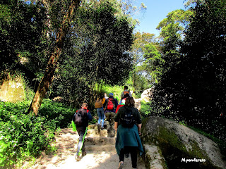 La ruta fue una pasada, algo diferente de lo que hace la gente que va a visitar Sintra. Nosotros tuvimos el placer de contemplar todos los palacios desde otro punto de vista, en una ruta llena de arboles y flores de una cantidad de especies de varios continentes las cuales nos las iba explicando magníficamente nuestro guía. Cuando alcanzamos la mitad de la ruta habíamos llegado a un acuerdo con Thiago para comernos el famoso muerdino y que nuestro amigo disfrutara con nosotros de las viandas extremeñas, lo cual hizo alegremente y repitiendo patatera, que es lo que mas le gustó.